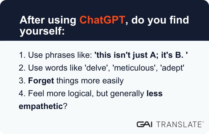 This technological revolution is not just changing how we communicate, but how we think and feel. AI is reshaping the way we process and recall information. Here are some examples.